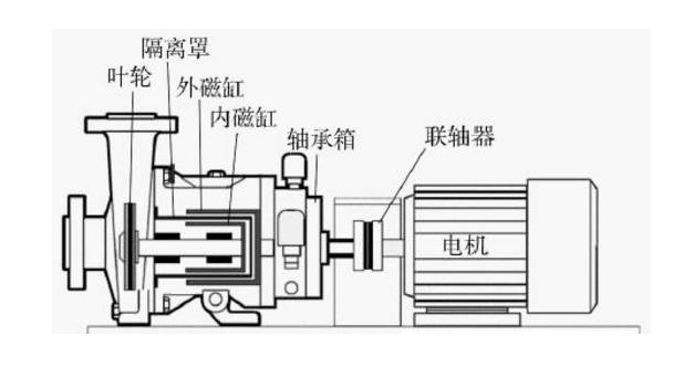 磁力泵的結構及組成磁力泵的各部件:磁力泵由泵,磁力傳動器以及電動機三個部分組成,而磁力傳動器又由外磁缸,內磁缸及不導磁的隔離套組成。