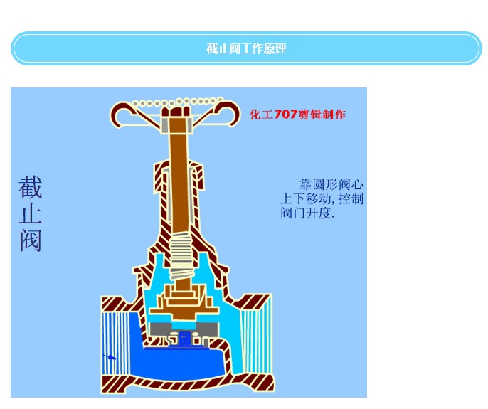 截止閥的啟閉件是塞形的閥瓣,密封面呈平面或錐面,閥瓣沿流體的中心線作直線運動。