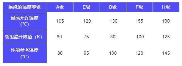電動(dòng)機(jī)的絕緣等級(jí)是指其所用絕緣材料的耐熱等級(jí),分A、E、B、F、H級(jí).允許溫升是指電動(dòng)機(jī)的溫度與周圍環(huán)境溫度相比升高的限度。