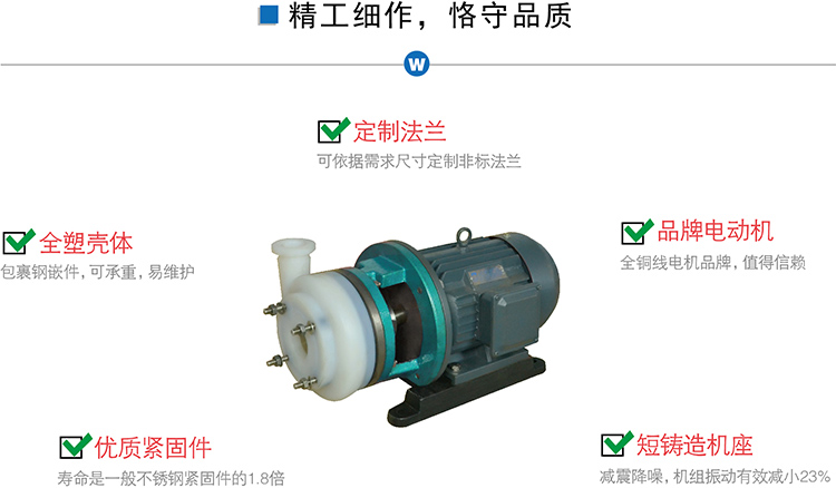 氟塑料離心泵又稱其為塑料離心泵、襯氟離心泵、耐腐蝕離心泵,FSB氟塑料離心泵屬于懸臂式單級單吸離心泵,其特點是全塑殼體,分為長支架型和短支架型。
